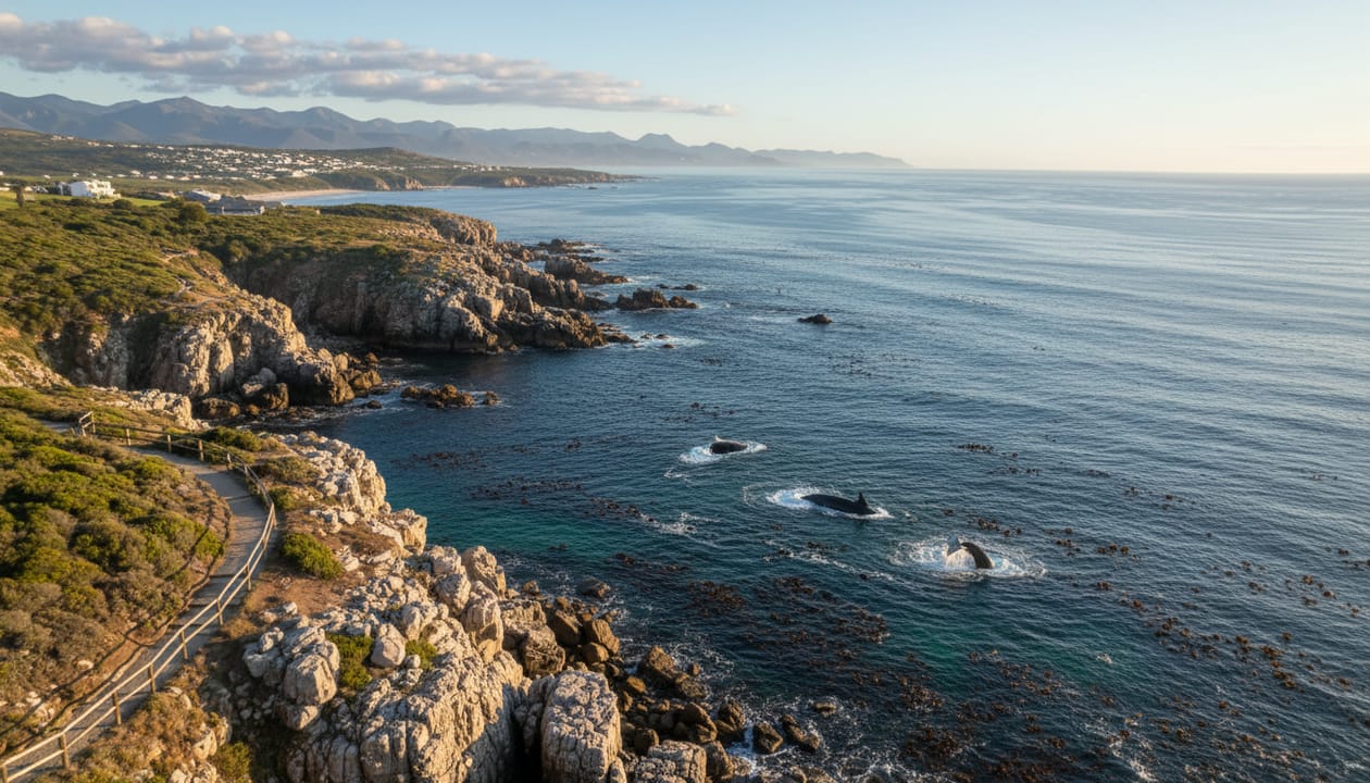 Hermanus is located approximately 120 kilometers from Cape Town, making it a scenic ninety-minute drive. Most visitors arrive via Cape Town International Airport and then rent a car or arrange a shuttle to reach the coast.
