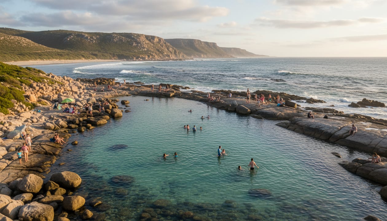 Hermanus is globally renowned for its land-based whale watching, but for those who prefer to get into the water rather than watch from the cliffs, the local tidal pools offer a serene and safe alternative to the open Atlantic. A dip in a hermanus tidal pool is a quintessential Overberg experience, combining the refreshing chill of the ocean with the safety of rock-walled enclosures.