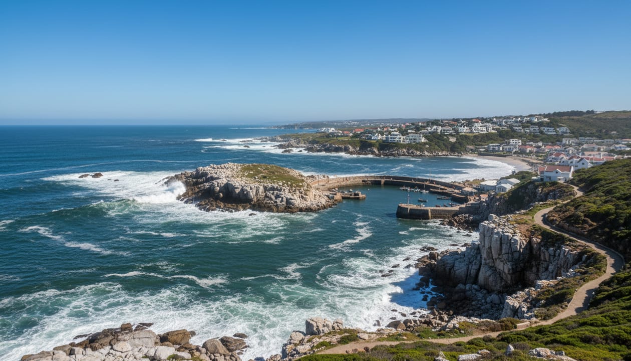 Hermanus is located approximately 120 kilometers from Cape Town, making it an easy drive through the scenic Houw Hoek Pass or the coastal Clarence Drive. Most international visitors arrive via Cape Town International Airport.